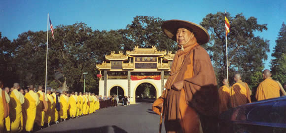 一九六八年,成立「暑假楞严讲修班」,有华盛顿州州立大学学生三十余人,远来学习佛法。结业后,美籍青年五人,恳求剃度出家,创美国佛教史始有僧相之记录。随着日益扩大的僧团,原有的佛教讲堂不敷使用,于一九七○年成立金山禅寺,一九七六年购置国际性大道场万佛圣城;尔后金轮圣寺、金佛圣寺、金峰圣寺、华严圣寺、法界圣城等各分支道场相继成立。上人不遗余力致力于弘法、译经、教育等事业,广建道场,培植人才,订立宗旨。集四众之真诚,尽未来际劫、虚空法界,光大如来正法家业。